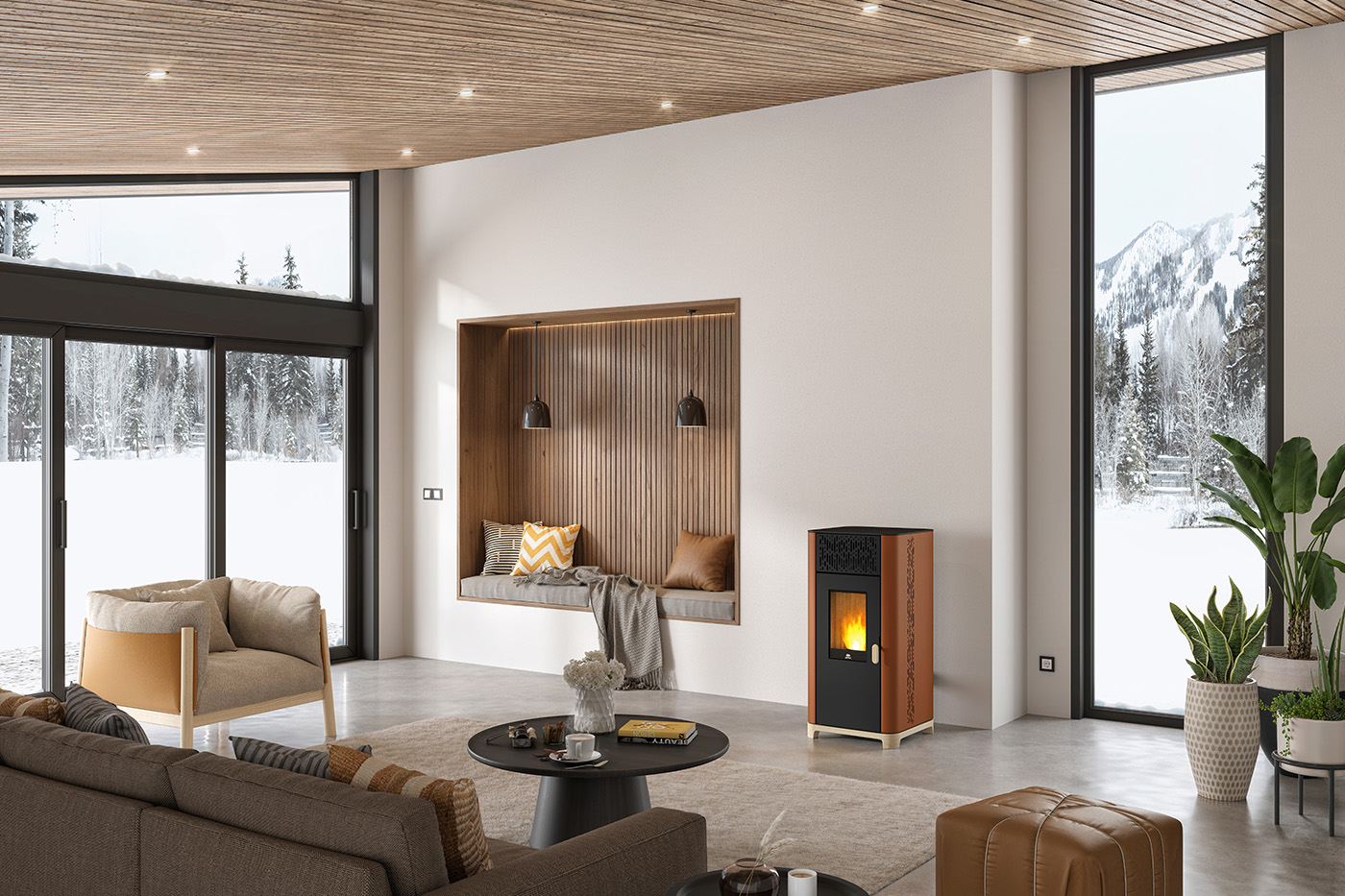 De JØTUL PF 1034 pelletkachel heeft een ultra-trendy design met zijn luchtroosters en natuurlijke houten afwerking. Kies uit 2 afwerkingen die passen bij je interieur: zwarte stalen bekleding of cortenstaal voor een nog modernere look. Technisch gezien kan het vermogen van 10 kW zelfs de grootste ruimtes of slecht geïsoleerde interieurs verwarmen. De geforceerde voorventilatie past zich aan het benodigde vermogen aan. Je aangesloten kachel geeft je het gemak van afstandsbediening.